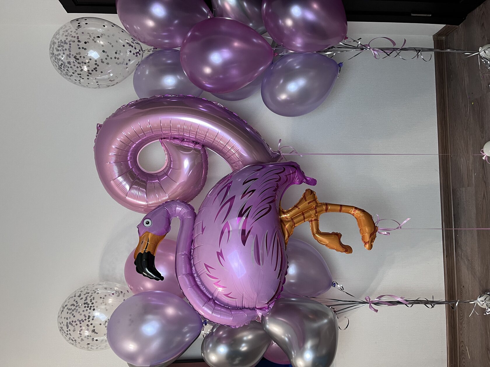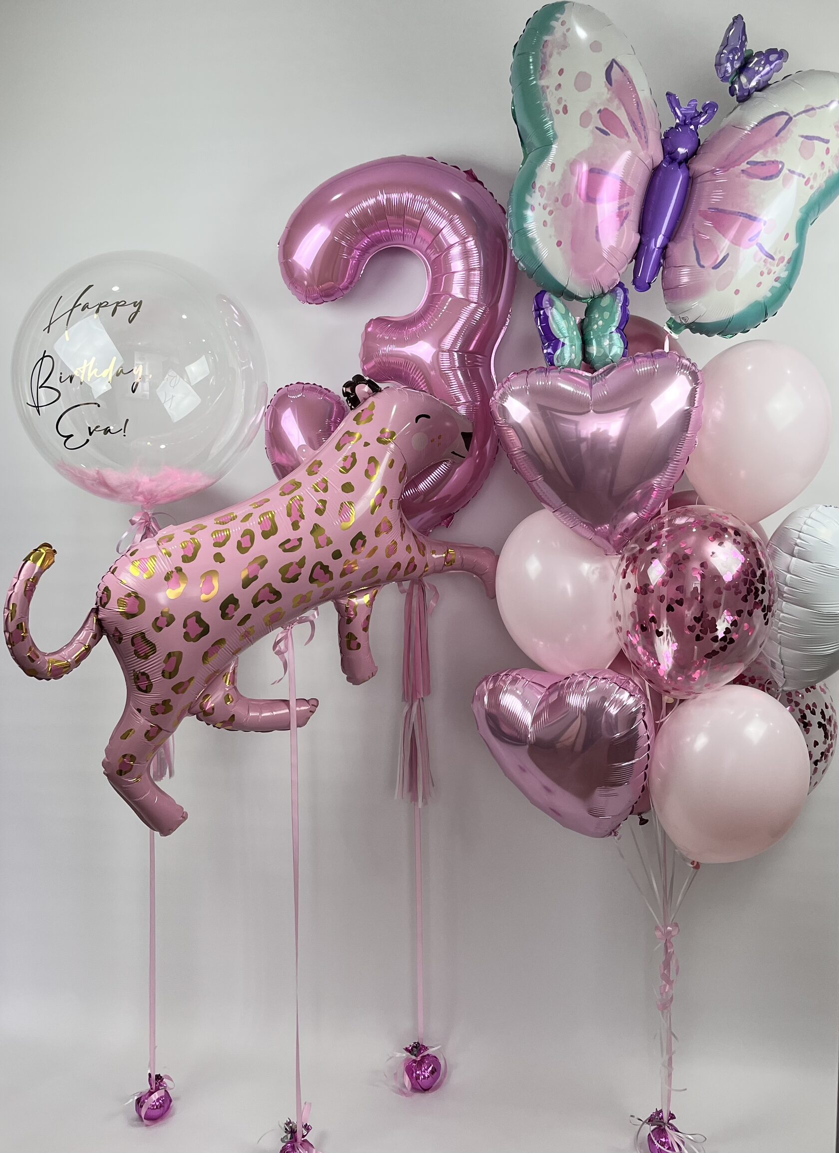 фонтан: Бабочка, 2 сердца розовых, 1 сердце с надписью, 3 шара с конфетти, 5 розовых нежных